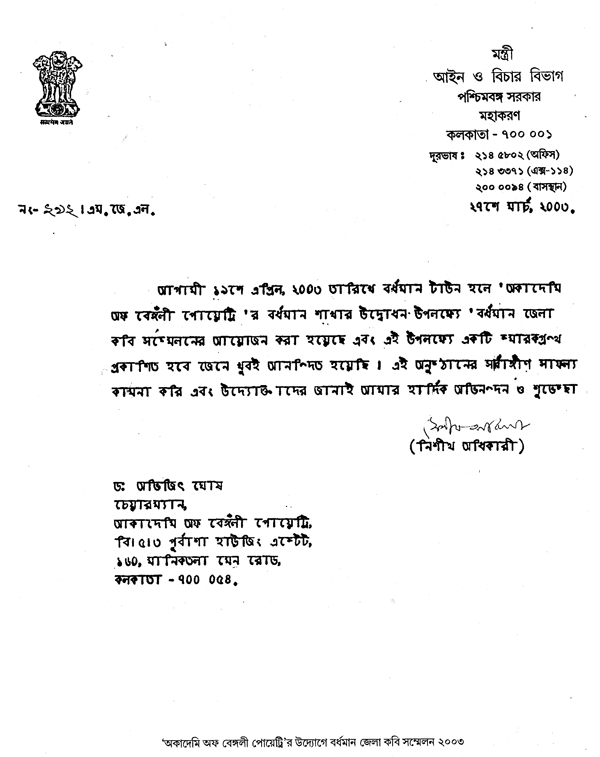 Related With : Agni Sphulingo, Soiniker Diary, Writers Forum, Young Writers, Kobita Gronthagar, Muktomela, Kolkatar Ahongkar, All India National Poets Congress, Dyn Art Movement, Academy of Bengali Poetry, Souhardyo 70, Bangali Muslim Sahitya Samaj (Trust), Old Age Mission, Republican Party of India, West Bengal, International Friendship Foundation, The Humanitarian Trust